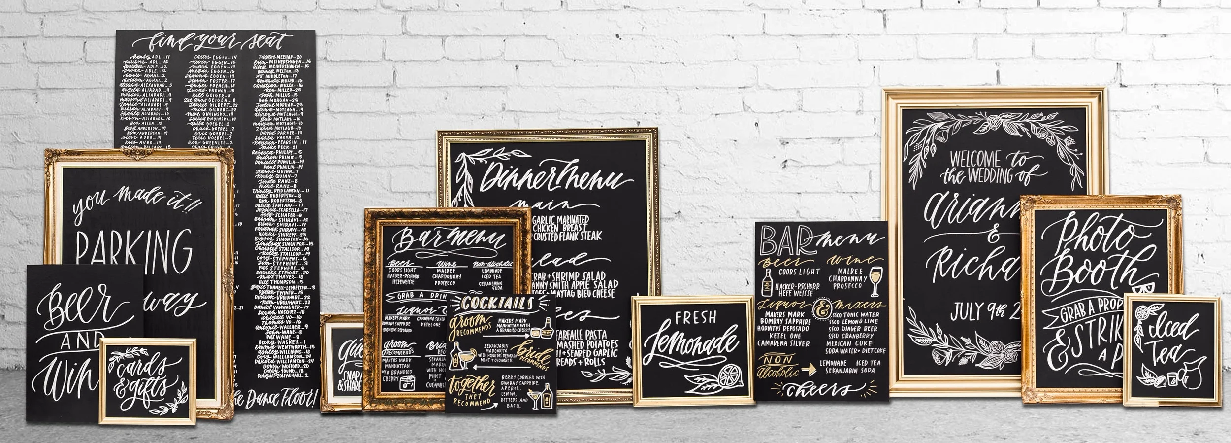 I create custom signs and paper goods for weddings and events. While these are a few of my more popular offerings, I am always up for a challenge. Get in touch with me below and we can talk more about your project!